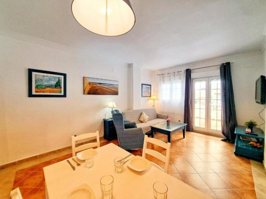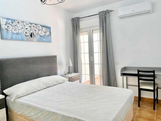 Los 3 dormitorios son muy amplios (uno de ellos con cama de matrimonio y otros dos con camas individual), 2 baños completos (uno de ellos, en suite principal), amplio salón-comedor con Aire Acondicionado y cocina perfectamente equipada con todos los electrodomésticos.